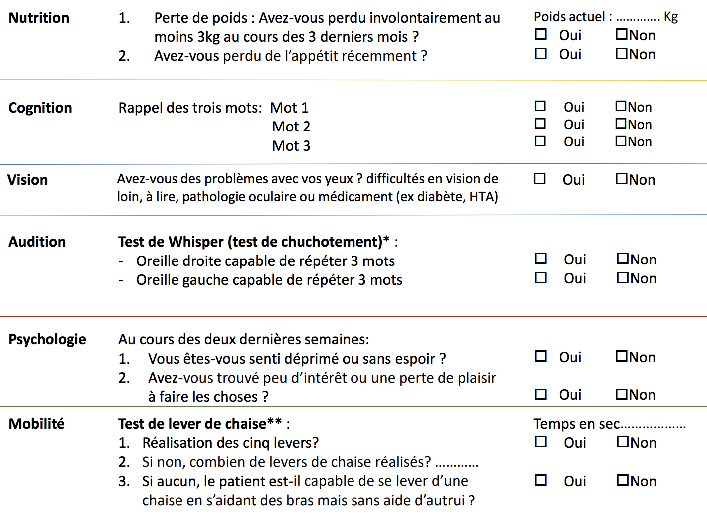La première étape est une phase de repérage, via un questionnaire (disponible sur l’application IcopeMonitor). Des questions simples sont posées aux patients, sur la mémoire par exemple. "On demande notamment quelle est l’année, le mois, le jour de la semaine et le jour du mois, explique le Pr Vellas. On peut très bien oublier qu’on est le 1er novembre, mais si quelqu’un ne se souvient pas qu’on est samedi, à ce moment-là vous devez lui demander d’aller voir le médecin traitant, qui devra décider s’il est nécessaire ou pas de demander une consultation mémoire ou autre chose." D’autres questions ont trait à la nutrition pour savoir si le sujet a perdu du poids, s’il a perdu de l'appétit, ou sur l’humeur afin de déterminer si la personne interrogée peut se sentir déprimée, avoir perdu l’envie de faire ce qu’elle aime. "Tout évolue en cascade. Si vous avez quelqu'un qui se sent déprimé, ne sort plus, mange moins, perd du muscle et de la mobilité, on va arriver petit à petit à une personne dépendante", a poursuivi le professeur. A l’issue de l’étape 1, le médecin insiste : si l’évaluation est normale, il n’y a pas besoin d’aller plus loin.