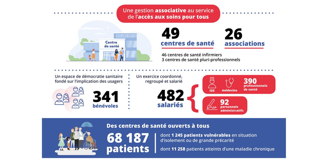 Durant l’année 2020, 2 944 754 actes de soin ont été réalisés, 170 actions de prévention et plus de 10 000 vaccinations antigrippales. Fortement mobilisés pendant la crise sanitaire, les centres de santé ont réalisé plus de 34 000 dépistages PCR.