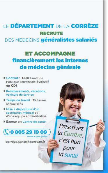 • Recrutement de nouveaux médecins pour permettre l’ouverture d’antennes supplémentaires de Corrèze santé.