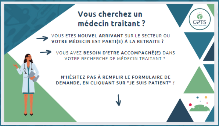 L’usager qui n’a pas de médecin traitant est invité à remplir le formulaire de contact, accessible via le site internet de la CPTS en remplissant un document mis à disposition dans toutes les mairies du territoire. S’il n’a pas accès à Internet, il peut aussi contacter la permanence téléphonique au 09 84 11 16 09 (du lundi au vendredi de 9h à 12h et de 13h à 16h).
