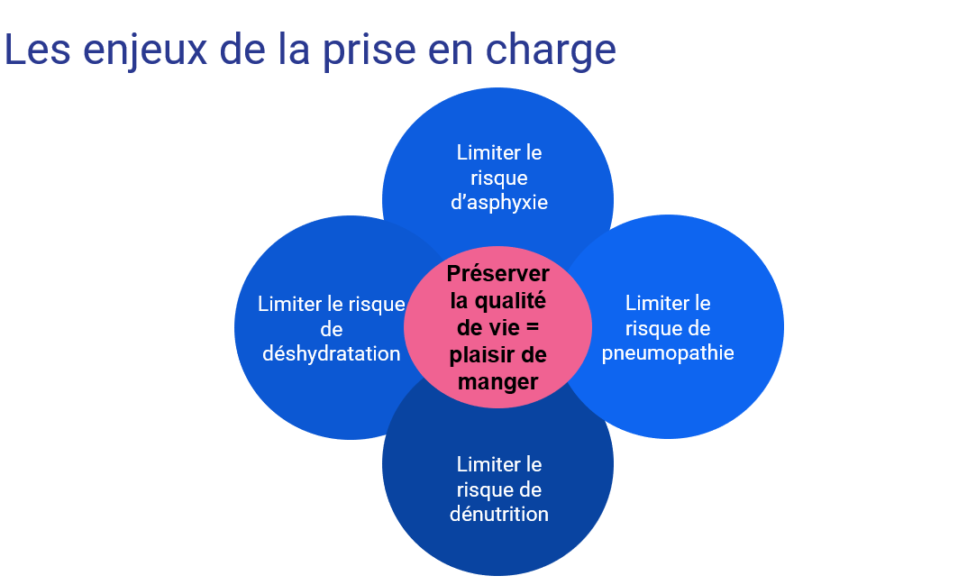 L’objectif de cet outil est de dépister les facteurs de risques de complications des troubles de la déglutition et de mettre en oeuvre les actions de prévention de première intention. Ce questionnaire composé de 11 questions fermées est relativement rapide : La patient a-t-il plaisir à manger ? Est-il bien positionner pour s’alimenter ? L’éveil et l’attention sont-ils adaptés au moment du repas ? Le patient at il perdu du poids ces trois derniers mois ? Lorsque le soignant valide au moins une réponse écrite en gras, sur la colonne de droite, alors un facteur de risque de complication est mis en évidence. Une action de prévention doit être mise en place.