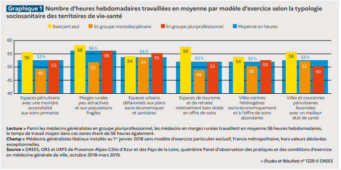 Une grande majorité des médecins libéraux en MSP se plaignent d’une charge de travail intense, d’une "hypersollicitation", et certains estiment même être en surmenage. "Aucune étude n’a mesuré le taux horaire réellement effectué dans les deux structures d’exercice. Dans ma recherche, l’analyse n’a pas montré de différence statistique sur le temps de travail, compté en jours/semaine, des deux groupes, mais les libéraux semblent travailler plus que les salariés", note Lucie Roux.
