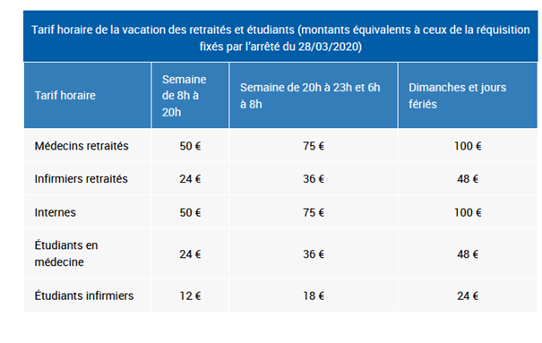 "Considérant que la vaccination contre le virus du Sars-Cov-2 est essentielle pour contenir l'épidémie et que les conditions particulières de la mise en œuvre de cette vaccination nécessitent de prévoir des rémunérations spécifiques des professionnels de santé et des structures impliqués", l’arrêté publié le 6 février dernier, fixe par métier la rémunération des professionnels de santé qui peuvent participer aux opérations de vaccination anti-Covid dans un centre de vaccination : infirmiers ou médecins, qu’ils soient remplaçants, retraités ou étudiants.