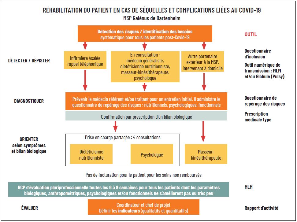 Pour l’instant, les données brutes ont été récoltées mais n’ont pas encore été interprétées par Sylvain Orsat. Un chiffre ressort néanmoins : aucun patient inclus dans le protocole n’a abandonné en cours de route, ce qui semble indiquer un réel besoin. Ce chiffre a été confirmé par leur satisfaction face à cette prise en charge globale et prolongée. "C’est quelque chose que nous faisons peu en médecine générale, explique Sylvain Orsat. Les patients sont pourtant demandeurs, et ils étaient ravis que nous ayons pris cette initiative, que nous nous occupions d’eux après la maladie." Le tout dans un parcours totalement pris en charge, soit par l’Assurance maladie, soit par la MSP (à l’exception de certaines prescriptions non remboursées, comme le dosage du zinc ou de la vitamine D).