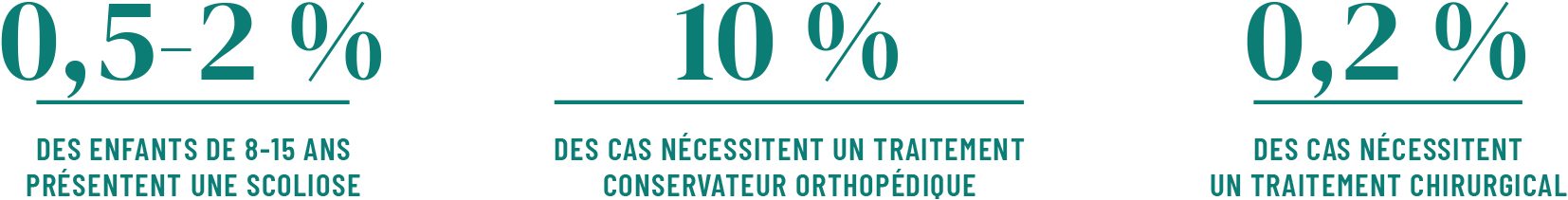 La scoliose idiopathique concernerait, en France, entre 0,5 et 2 % des 8-15 ans, principalement les filles, pour lesquelles l’incidence est 8 fois plus élevée que chez les garçons, estime la Cnam. De manière plus rare, des scolioses peuvent également apparaître à la suite d’une maladie neuromusculaire ou osseuse.