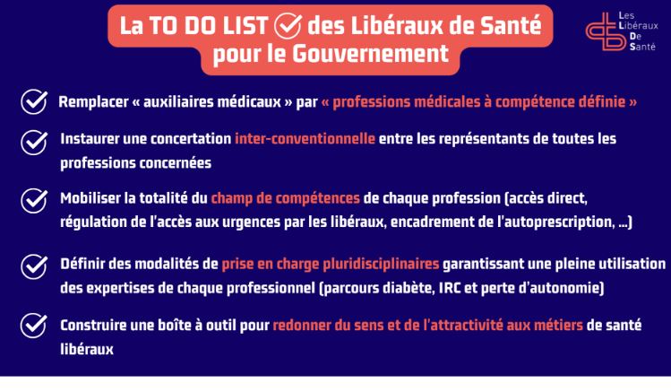 Pour “faciliter l’accès au parcours de soins du patient, rendre plus rapide son orientation”, et “multiplier les portes d’entrée” dans le système de santé, l’intersyndicale souhaite que les évolutions des compétences (du fait de la réingénierie des diplômes et la formation) se traduise véritablement dans les actes. Ce qui suppose, entre autres, de modifier le cadre réglementaire pour permettre l’accès direct à certaines professions – avec un compte-rendu systématique au médecin traitant. “On n’a pas établi de liste particulière”, fait savoir Franck Devulder, même s’il y a des pistes de réflexion : traumatologie légère pour les kinés, plaies et sutures pour les infirmières libérales ou encore, dispensation protocolisée pour les pharmaciens.